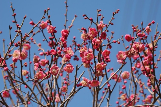 早朝の雑木林で生い茂った笹を刈っていると、どこからともなくモズがやってきました。近くの梢にとまり、「何をしているのかな?」と物珍しそうにこちらを見ています。外見だけでは雌なのか、昨年生まれの若鳥なのかははっきりしません。紅白の梅が咲き進む「平安の庭」では、コンコンコンと勢いよく木をつつく音が聞こえてきました。見上げると、キツツキの仲間のアカゲラがいました。キャンパスで見られるキツツキの種類は、アオゲラ、アカゲラ、コゲラの主に3種です。それだけ自然が豊かな証といえるでしょう。