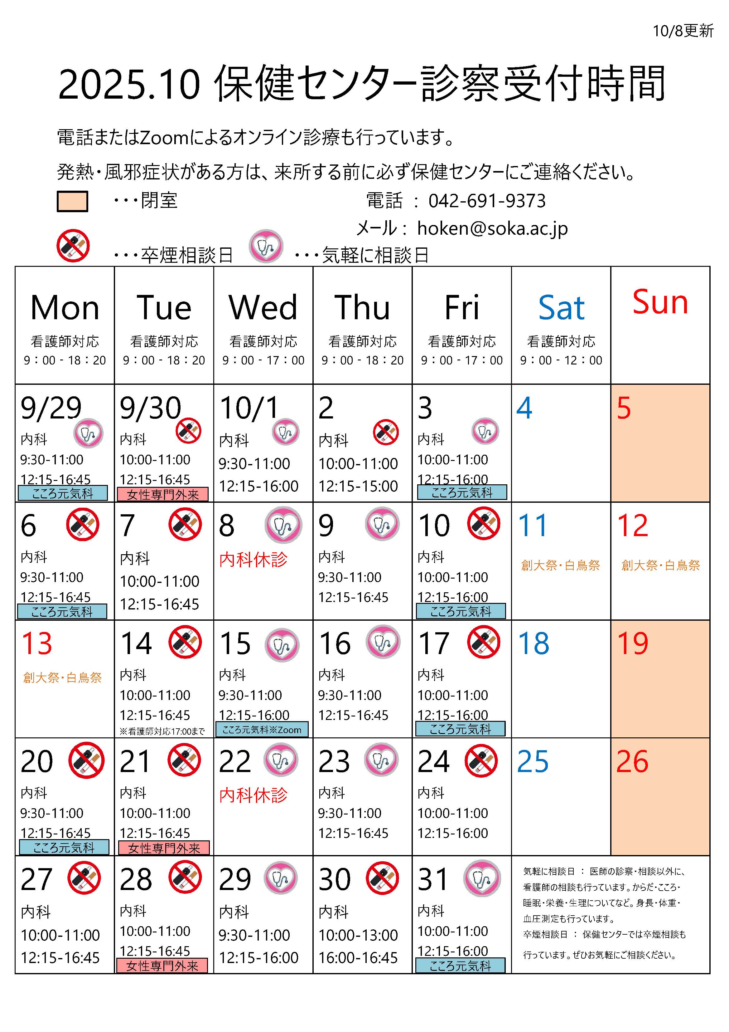 電話:042-691-9373 E-mail:hoken@soka.ac.jp