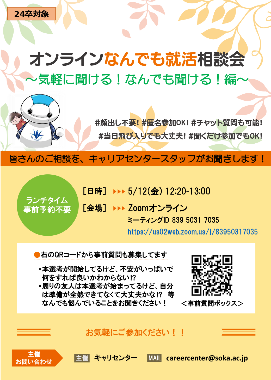 オンラインなんでも就活相談会~気軽に聞ける!なんでも聞ける!~ | 就職・キャリア | 創価大学