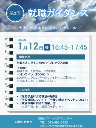2025年卒の就活生を対象に、就職ガイダンスを開催します。