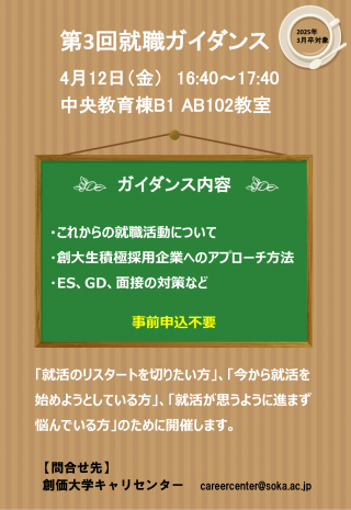 2025年卒の就活生を対象に、就職ガイダンスを開催します。