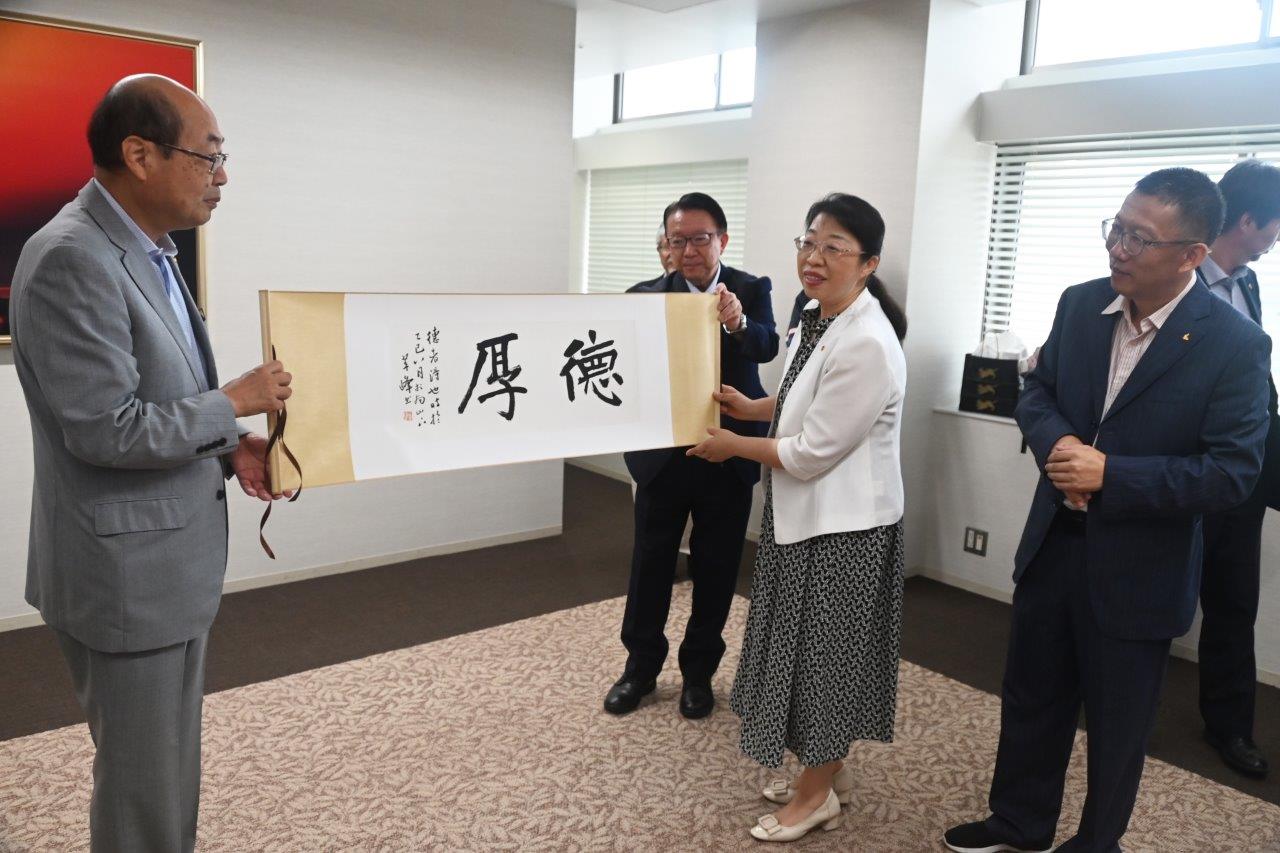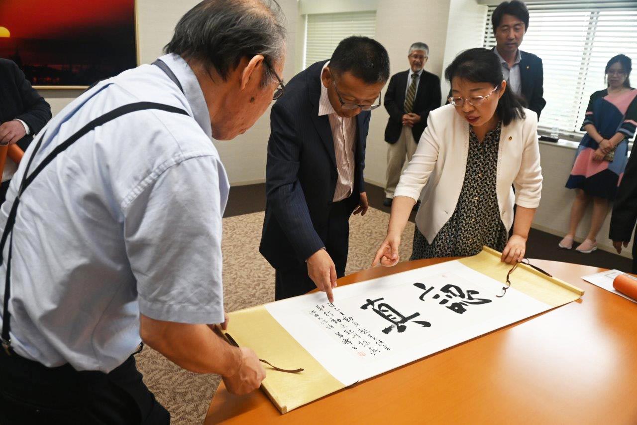 「私個人としては、これまで何度も創価大学を訪問しておりますが、この度は、連合会として初めて訪問することができました。1つの都市でこれほど多くの大学に池田思想の研究所が存在しているのは大変珍しく、連合会に加盟する大連の各大学では、毎年様々な研究や行事を行うとともに、学生による読書会も行われています。」「昨年の設立から1年が経ちましたが、1年間で2度創大生に大連を訪問いただき、学生同士の交流も行われ、中国の学生にとっても大きな成長の因となっています。創大の周桜観桜会にも大連の学生を招待いただきました。中国の学生にとって、創価大学は憧れの大学であり、大連市からこれまで100名近い学生が創価大学を訪問しております。この中から本学及び各大学の教員も輩出されており、今年から創価大学で教鞭を執られている方もおります。」「世界市民教育を展開している創価大学及び、創価教育研究所とさらに連携を取り合いながら、今後も相互訪問を通じて研究交流、教育交流を一段と進めてまいりたいと考えております。」