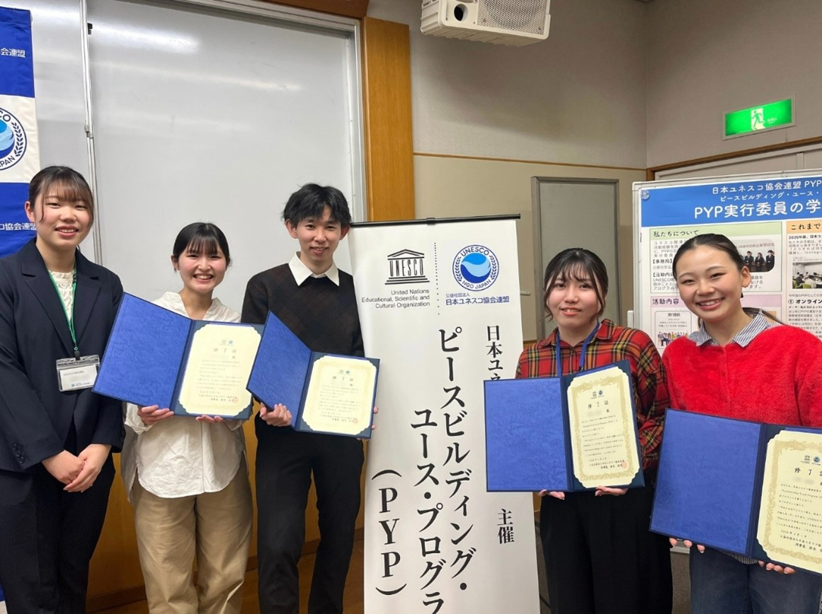 2月28日(土)、3月1日(日)に、日本ユネスコ協会連盟が主催する「ピースビルディング・ユース・プログラム(PYP)2025」が国立オリンピック記念青少年総合センターにて開催され、本学ユネスコクラブのメンバーである國松和明さん(教育学部2年)が実行委員として、盛島杏莉さん(教育学部4年)がユースボランティアとして参加しました。