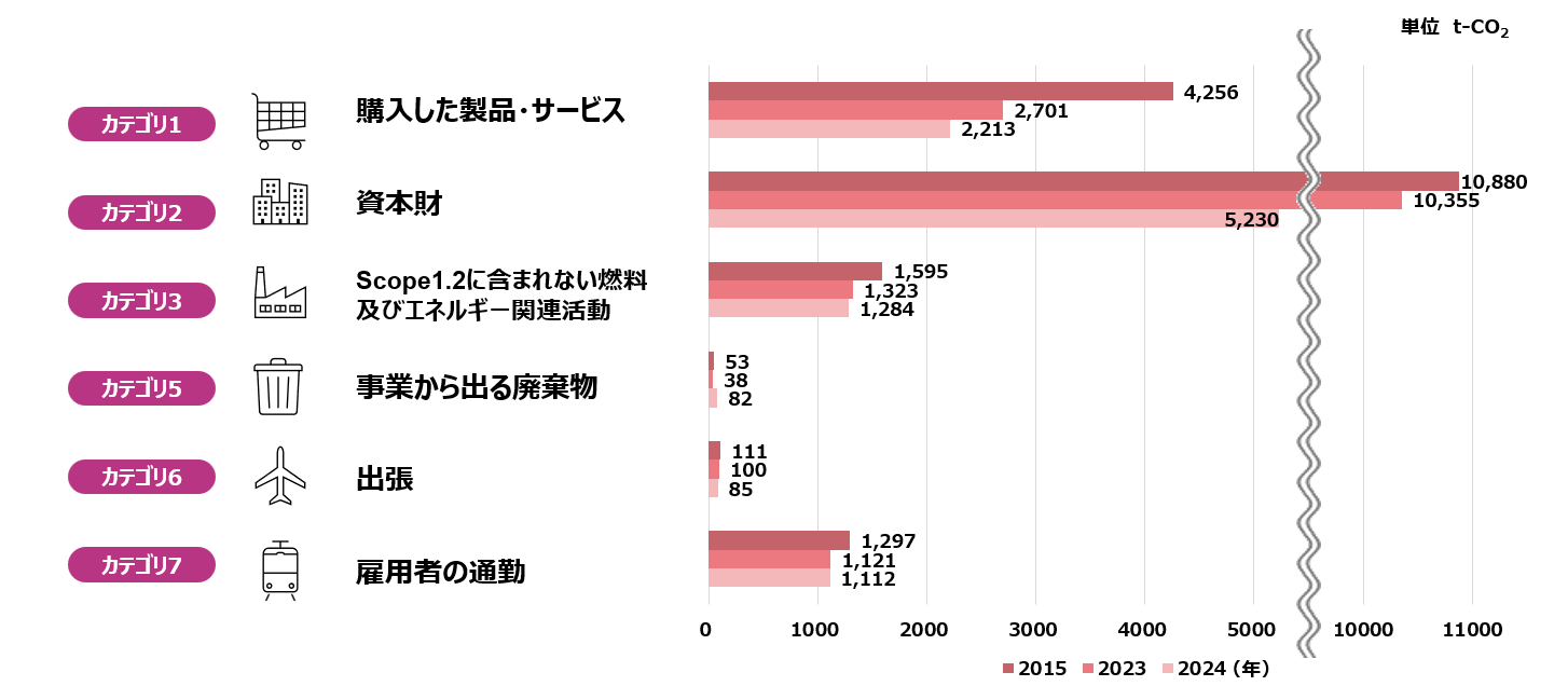<Scope3排出量算定結果(横棒、2015・2022・2023年のみ抜粋)>