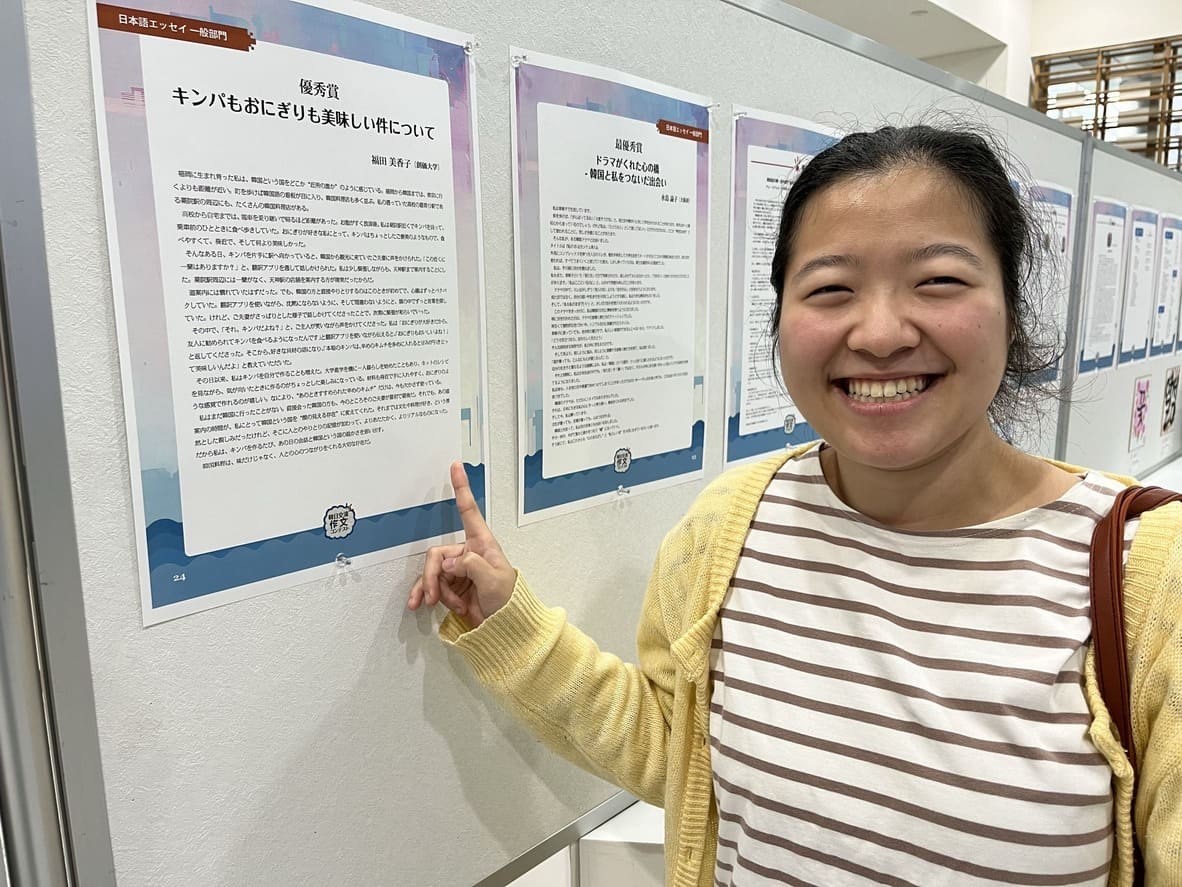 受賞にあたり福田さんは、「持病と向き合いながら大学生活を送り、何かできることをと参加した作文コンクールで優秀賞をいただき、とても驚きました。大好きな韓国を題材にした作品を評価していただけたことが本当に嬉しいです。」と語りました。