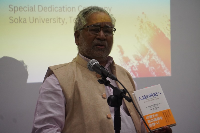 講演では「現代世界の紛争におけるガンジー非暴力思想の意義」をテーマに、混迷する現代社会において、知識や技術を平和のために使っていく「価値創造の力」と異なる立場であっても共通点を見出していく「対話の実践」の重要性が語られました。