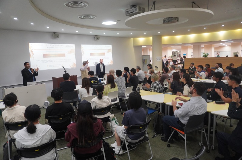 9月24日(水)、インド・ガンジー研究評議会議長のニーラカンタ・ラダクリシュナン博士による特別講演を中央教育棟2階SPACeのラーニングアリーナで開催し、本学学生および教職員が参加しました。