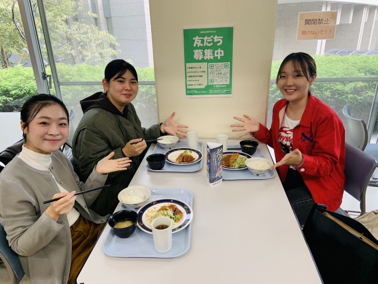 ・It's cheap and delicious, and I'm really grateful. Living expenses are high, so being able to eat lunch for just 100 yen is a big help. It seems like I can do my best in my afternoon classes.