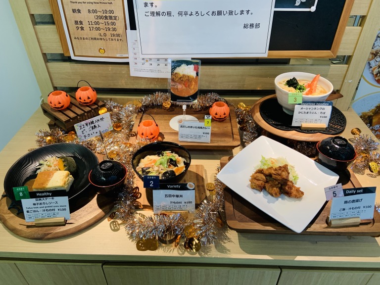 As part of our student support efforts to help students live healthy campus lives, on Tuesday, October 28th and Wednesday, November 19th, the campus cafeteria offered lunch and dinner menus that normally cost full price for just 100 yen, exclusively to students, faculty, and staff.