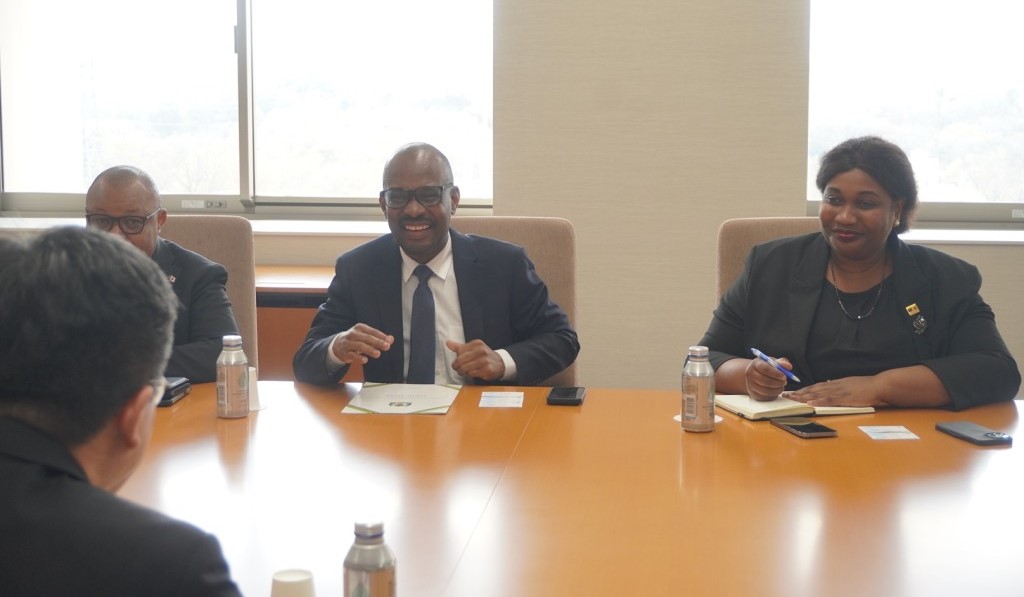 On Monday, March 30, Ambassador Extraordinary and Plenipotentiary of the United Republic of Tanzania, Mr. Anderson G. Mutatenbwa, Ambassador Extraordinary and Plenipotentiary of the United Republic of Tanzania, visited the University and met with Vice President Akio Nishiura and others at the Global Square of the University. At the beginning of the meeting, Vice President Nishiura introduced the Daisaku Ikeda history of the founder's exchange with Tanzania, and his friendship with former President Mukapa, symbolized by the cherry blossom trees on campus.
