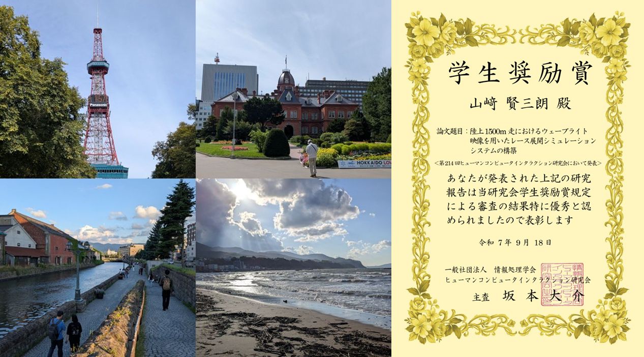 理工学研究科博士前期課程の山﨑賢三朗さん(宍戸研究室)が、2025年9月3日から4日に北海道科学大学(札幌市)で開催された「情報処理学会第214回ヒューマンコンピュータインタラクション研究会(HCI研究会)」において、学生奨励賞を受賞しました。