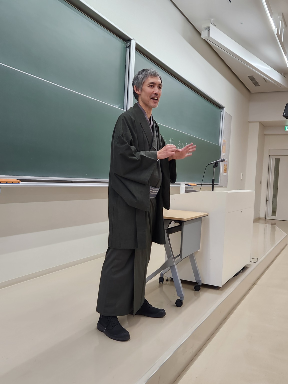 講演では、西田哲学の中心的概念である「場所」について、現代の日本人にも親しみのある「居場所」という言葉を手がかりに、平易かつ丁寧な解説が行われました。私たちが世界の中でどのように存在し、思考し、意味を見いだしているのかという根本的な問いが、「場所/居場所」という視点から明快に示されました。