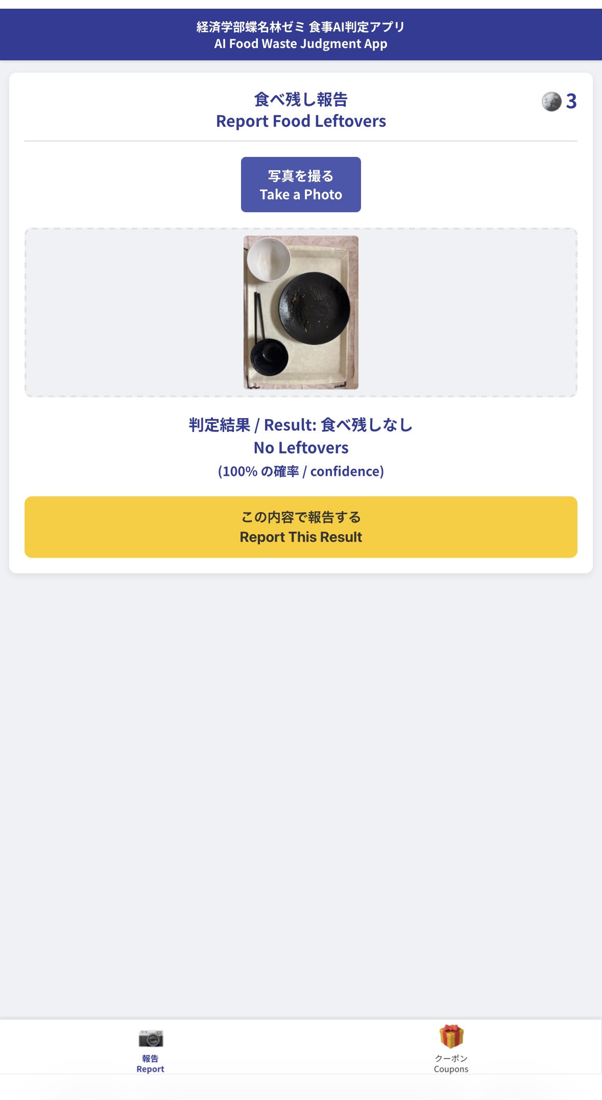 本学経済学部・蝶名林俊ゼミ(環境経済学・開発経済学)は、学生が開発したAIシステム(アプリ)を活用し、学内の「ニュープリンス食堂」において、フードロス削減を目的としたポイント付与施策を導入しました。