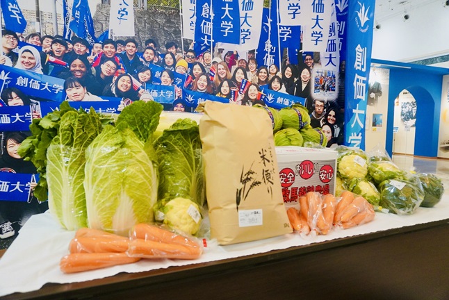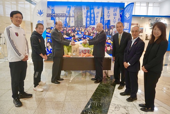 11月27日(木)、本学駅伝部への農作物等贈呈式が本部棟にて行われました。寄贈団体の加住地区町会・自治会連合会、加住地区住民協議会、滝山城跡文化協会の代表者が来学され、秋谷芳英理事長、駅伝部の川嶋伸次総監督、久保田満コーチらが迎えました。 贈呈式では、高月米、はくさい、にんじん、数馬の卵、だいこん、ブロッコリー、カリフラワー等が贈られ、川嶋総監督らが感謝の言葉と箱根駅伝への決意を述べました。寄贈された農作物は、箱根駅伝に挑む本学駅伝部の日々の食事に使用されます。