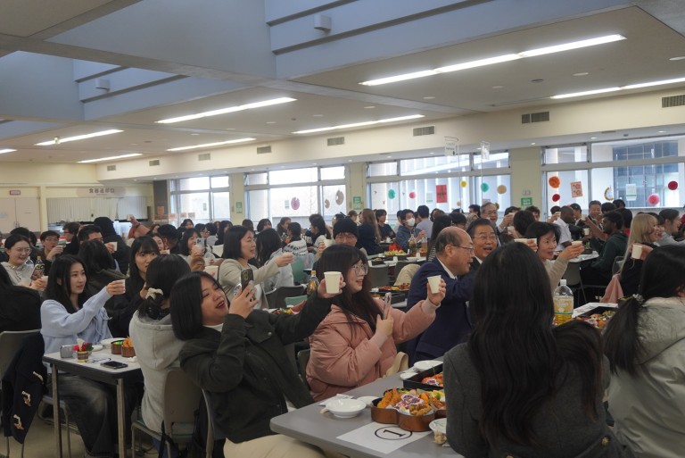 日本で新年を迎えた留学生や交換教員を対象とした「留学生新年会」が1月5日(月)、本学ニューロワール食堂で開催され、約160名が参加しました。