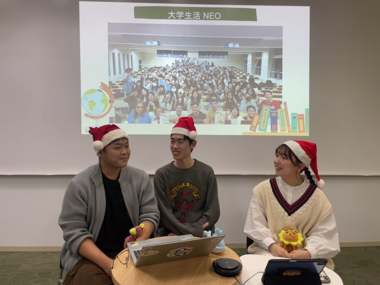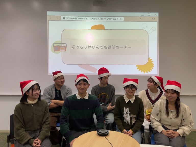 続いて、在学生によるラジオ形式のトークが行われ、大学での学び、寮生活、課外活動に関することなどチャットで多くの質問が寄せられました。