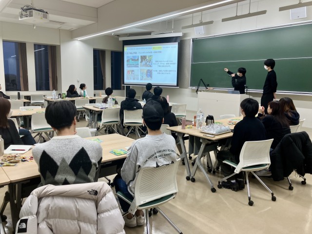1月14日(水)、経済学部の掛川三千代ゼミと株式会社伊藤園の共催によるイベント「マイボトルdeお茶会」が中央教育棟で開催され、学生・教職員が参加しました。