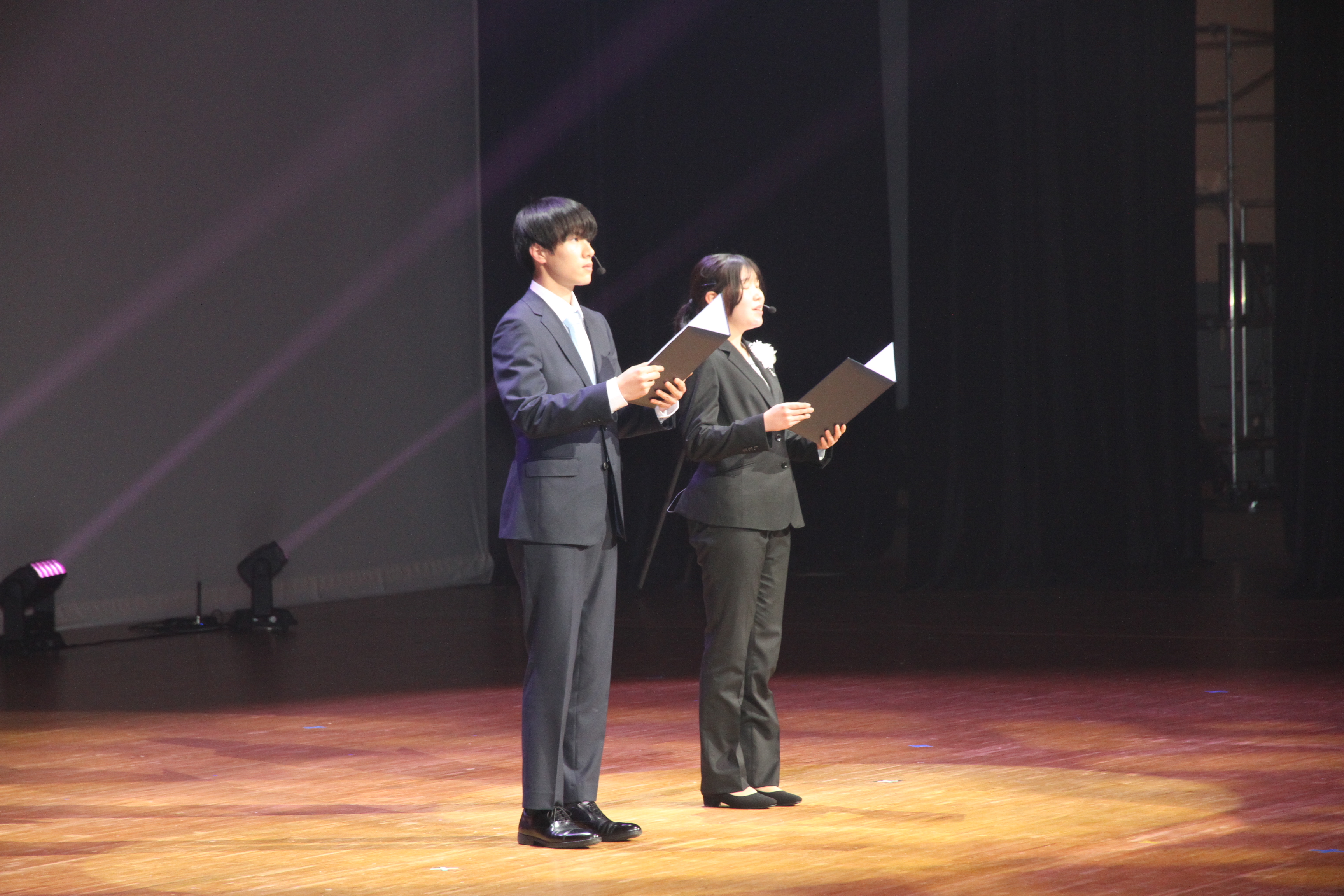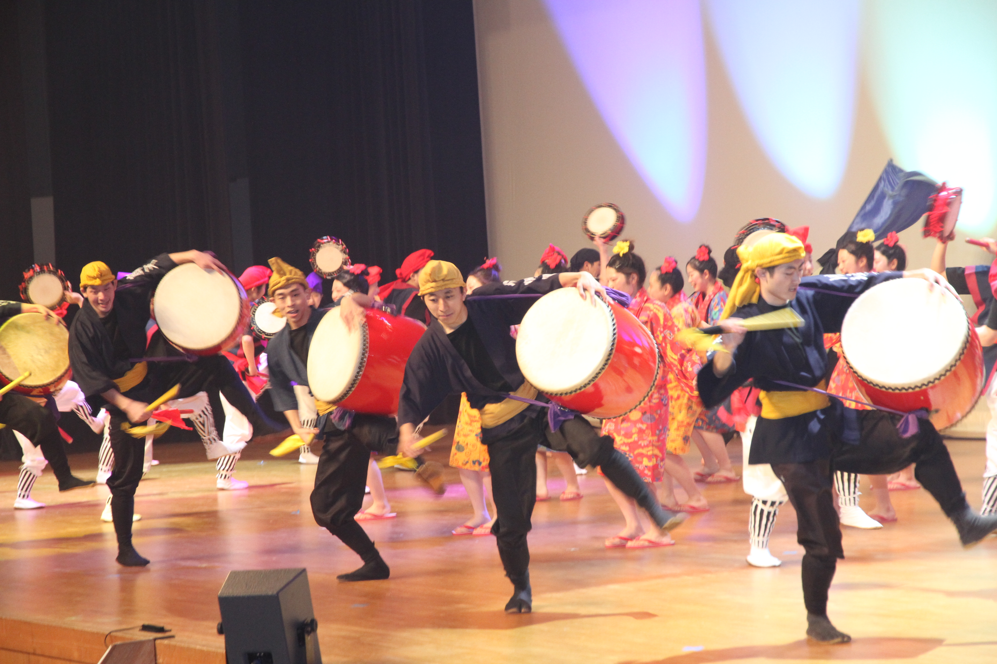 その後、沖縄舞踊のクラブ「イチャリバチョーデーズ」とダブルダッチ部「R2」による演目、在学生の歓迎スピーチ、新入生代表抱負が行われました。フィナーレでは、参加者が大学生活の決意を込めて学生歌を歌いあげ、入学式が終了しました。