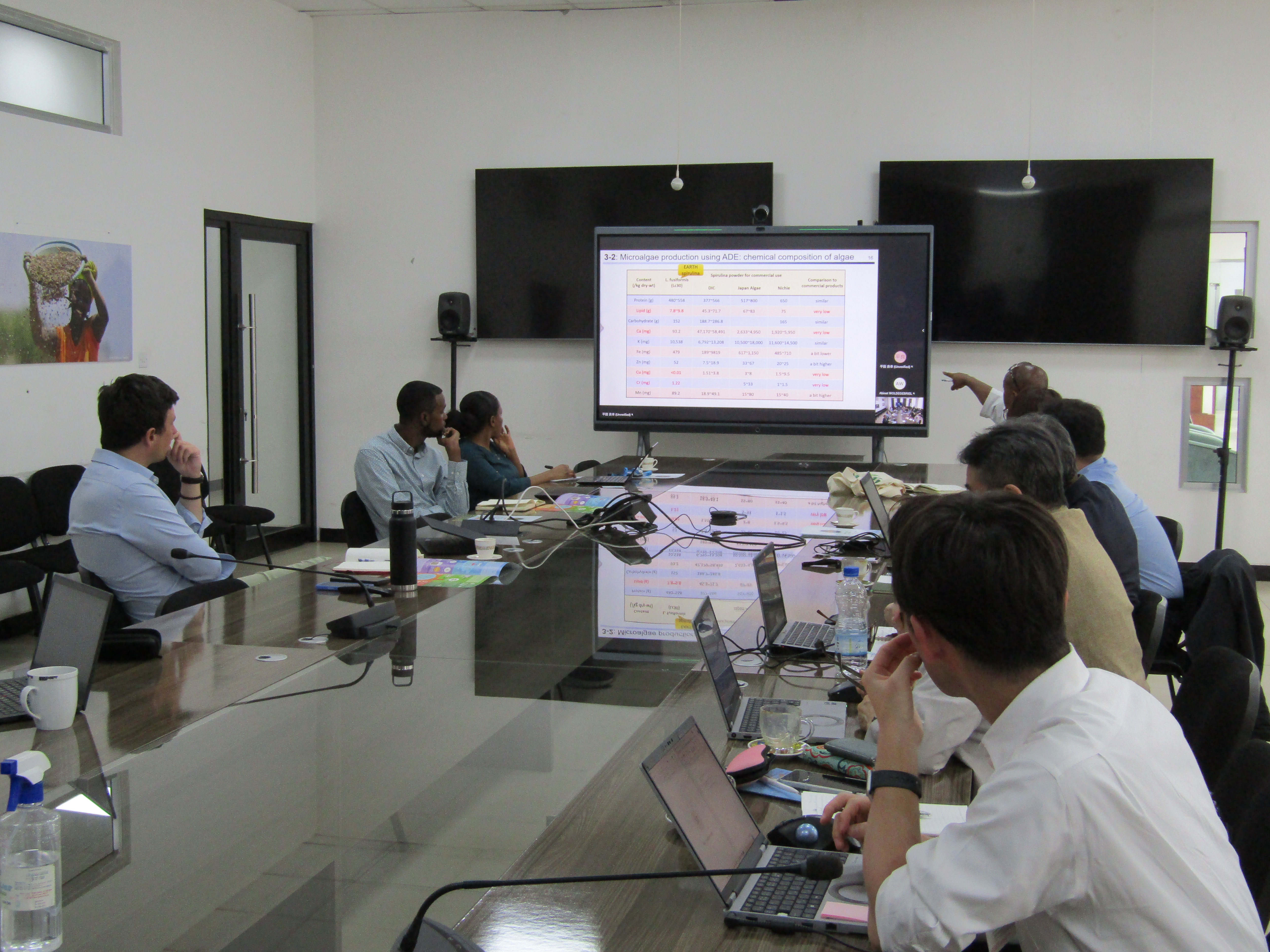 WFP担当者の方からは、テーマ4がアムハラ州小学校で実施した、スピルリナ入りパンの栄養改善調査について、強い関心を寄せていただきました。
