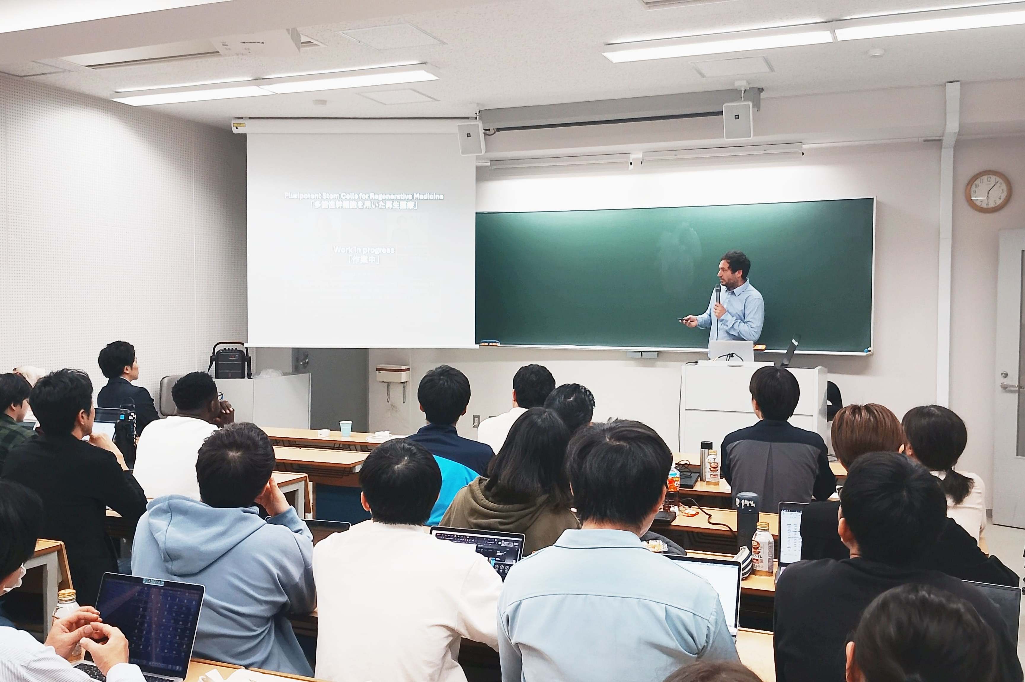 10月16日(木)、本学理工学部棟にて「第8回 SOKA-SPRING 異分野融合キャリア開発・育成セミナー」が開催され、学生、教職員など約40名が参加しました。SOKA-SPRING(創価大学 次世代研究者挑戦的研究プログラム)は、科学技術振興機構(JST)の支援を受け、博士後期課程学生の自由で挑戦的な研究を支援するとともに、多様なキャリアパスの開拓を後押しするプログラムです。本セミナーは、その活動の一環として、支援対象であるSOKA-SPRING選抜生が企画・運営の主体となり、開催されました。