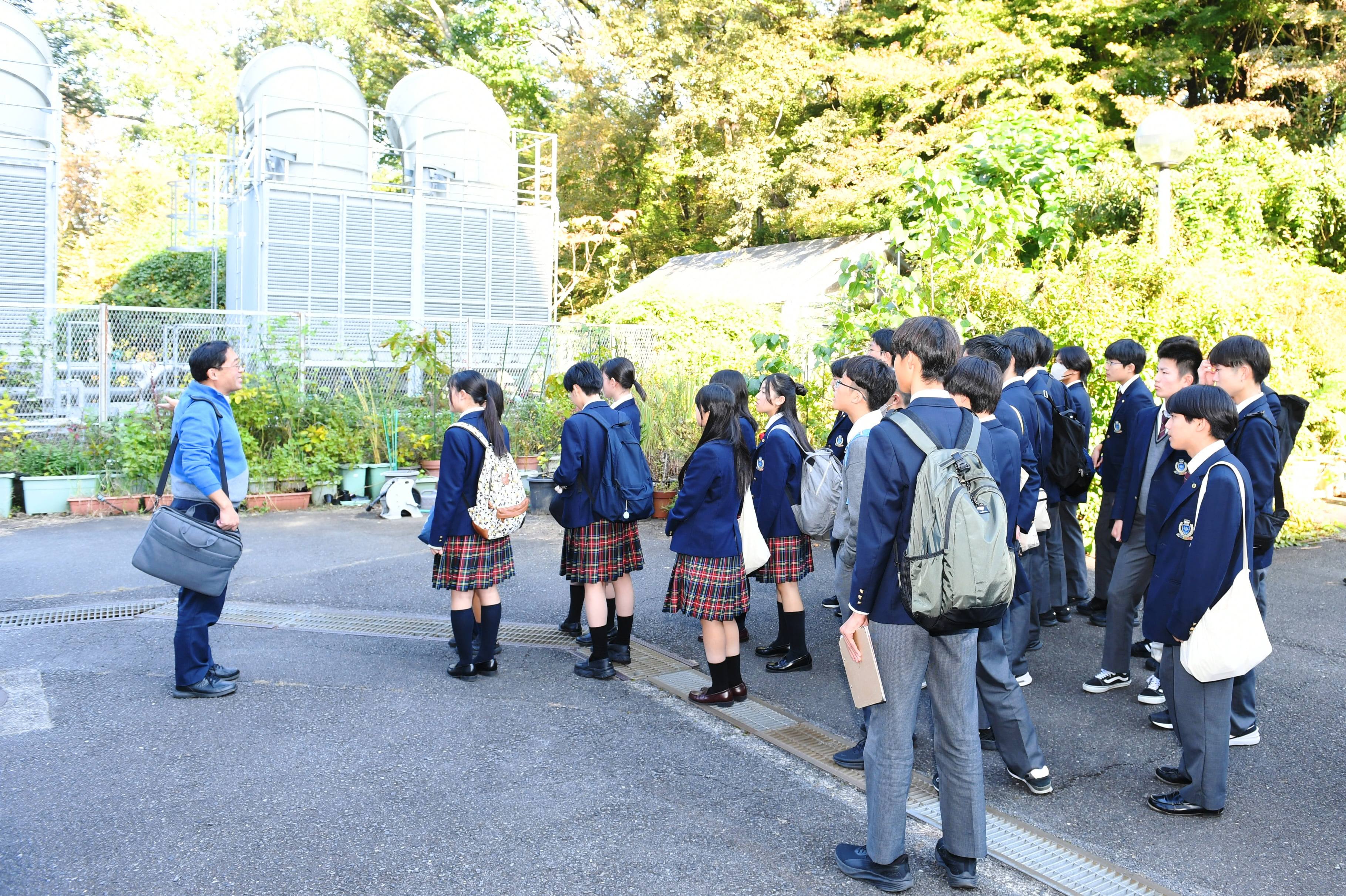 2025年10月29日(水)から10月31日(金)におきまして、関西創価中学校(大阪府・交野市)の生徒さんが創価大学を訪問し、研修が行われました。10月30日(木)におきましては、約50名の生徒さんが理工学部棟を訪問し、体験授業を受けていただきました。体験授業に先立ち、黒沢学部長が挨拶をし、その後、近藤准教授と久米川准教授が講義を行いました。講義の後は、理工学部の学生もサポートし、実験室や温室などの施設を見学していただきました。この度の体験授業を契機に、科学の分野への興味が更に深まることを期待しております。