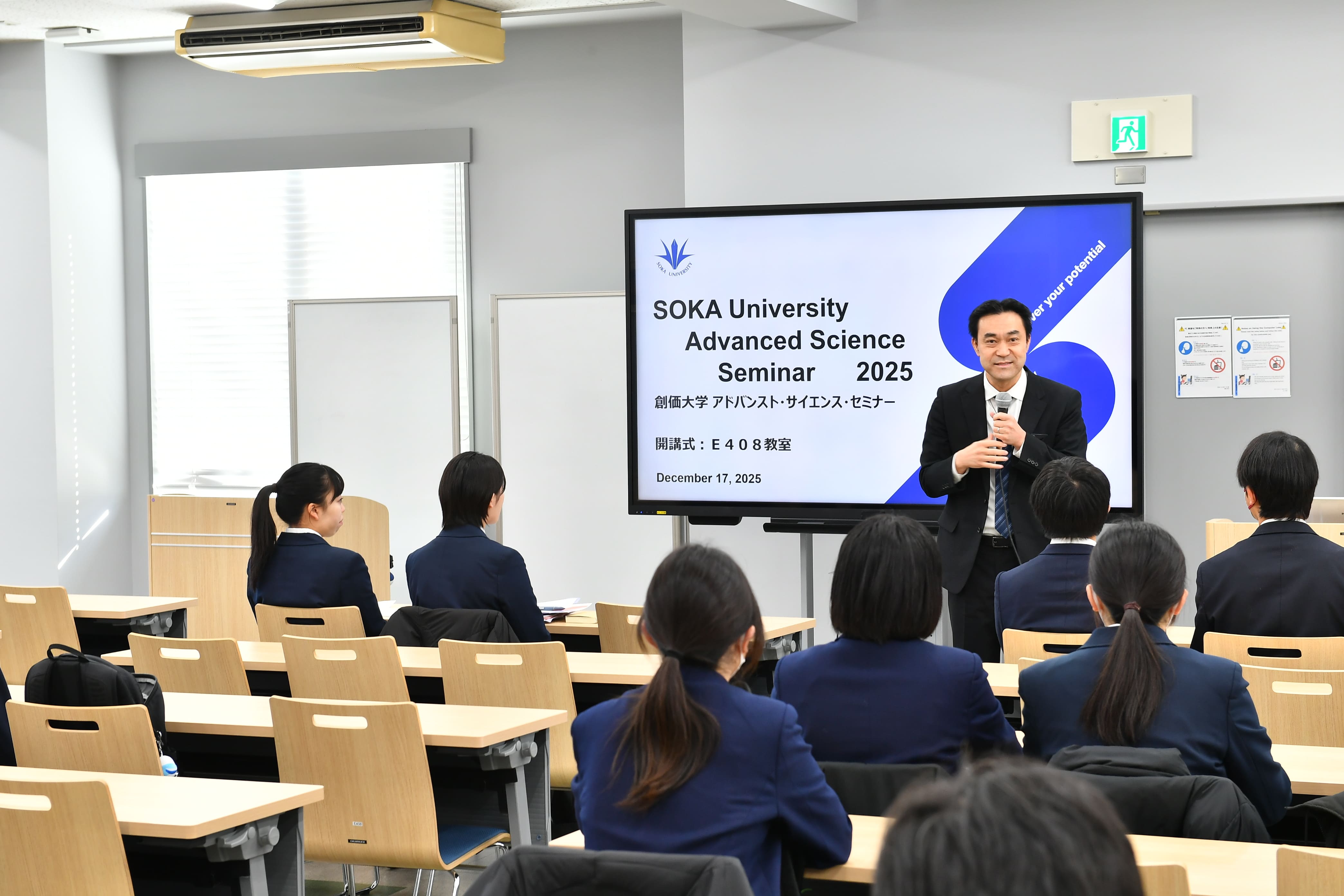 2025年12月18日(水)、創価高校2年生を対象としたアドバンストサイエンスセミナーを創価大学理工学部棟で開催をしました。この日は、以下の授業が行われました。