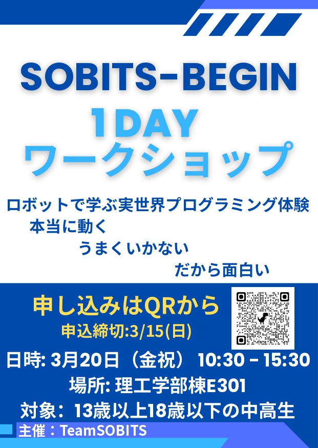 プログラミング、やってみたいけど難しそう…」 そんなあなたにこそ、、、TeamSOBITS主催のワークショップ「SOBITS-BEGIN」を開催します!