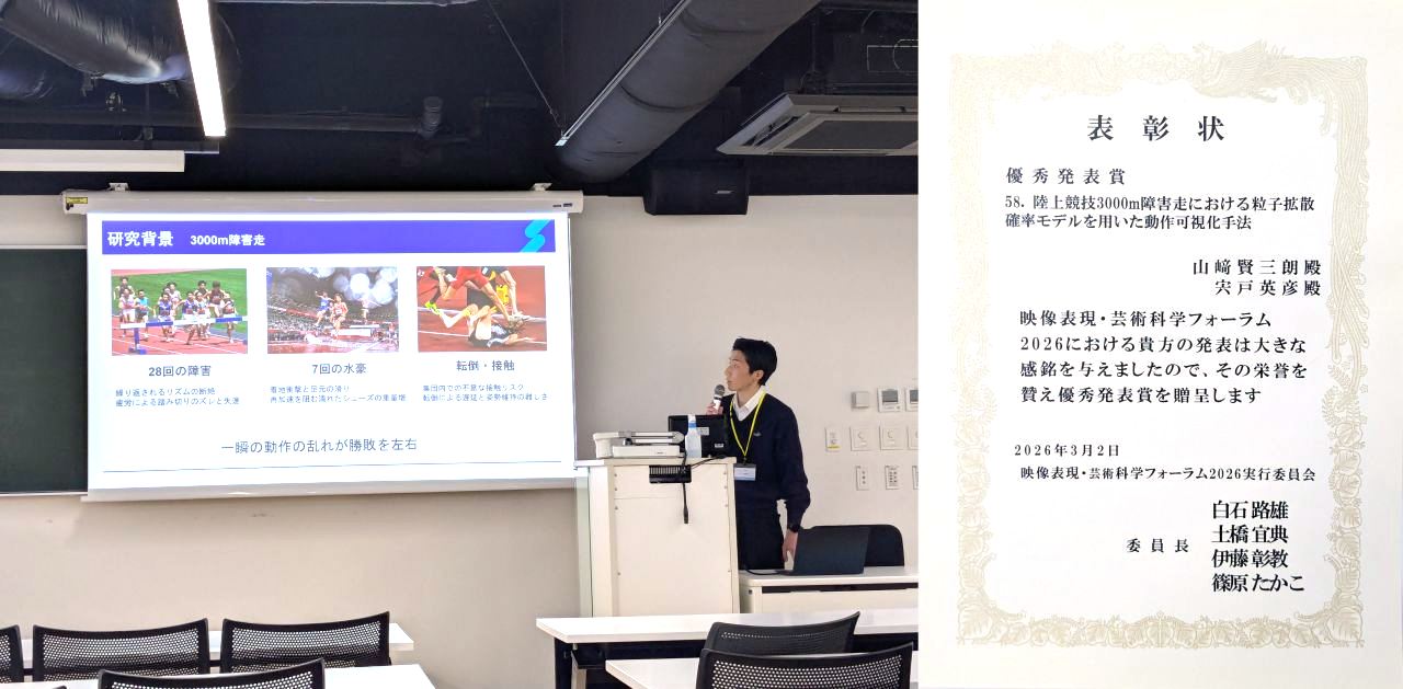 理工学研究科・山﨑賢三朗さんが「映像表現・芸術科学フォーラム2026」で優秀発表賞を受賞!
