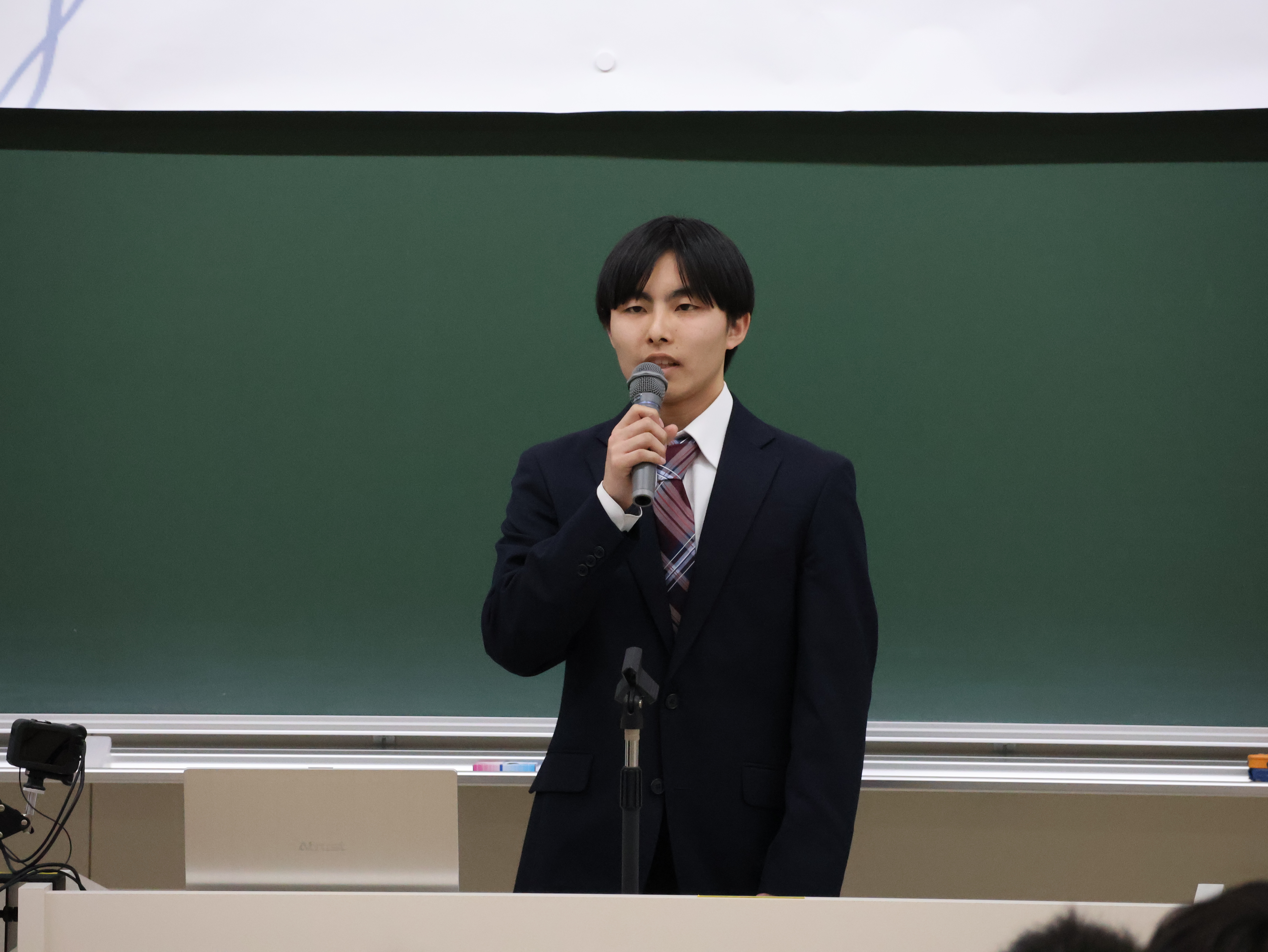 はじめに、佐々木ディレクターより挨拶があり、「分断や対立の社会において、物事の本質を見抜く力を養う重要性を強調。対話と結合を重んじ、人間を中心に据えた平和の哲学を築いてきた創立者の精神に触れ、その精神を確かなものとして未来へつないでいく使命がGCP生にはある」と述べました。 そして、「学生一人ひとりが時代精神を創りゆく存在として成長し、社会で力を発揮する人材へと羽ばたいて欲しい」と期待を寄せました。
