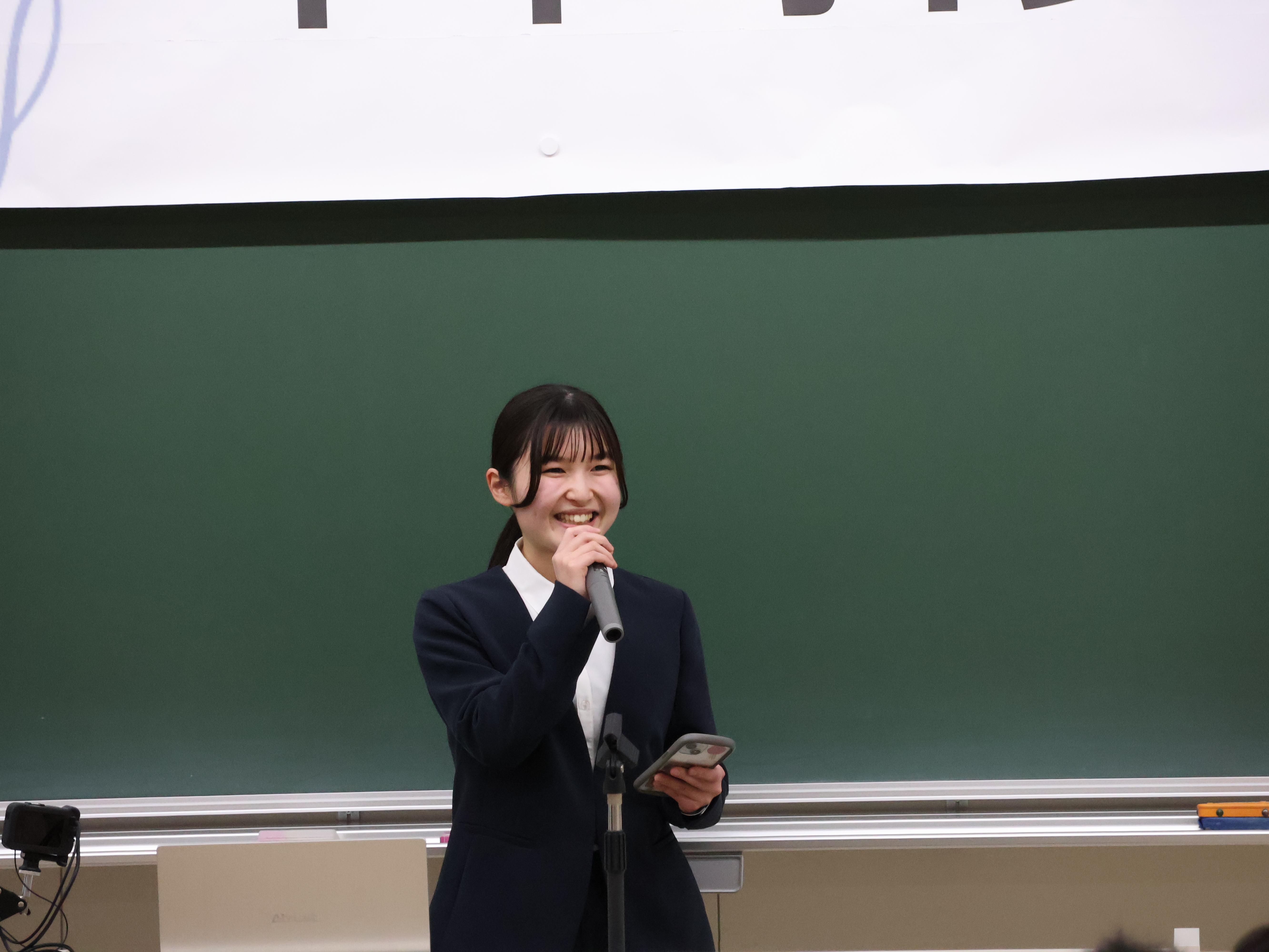続いて、GCP15期生による振り返り報告が行われ、23名の学生一人ひとりが、GCPでの2年間を通して培ってきた学びをもとに、それぞれが自身の歩みを振り返り、今後につながる決意を語りました。また、これまで支えてくださった方々への感謝の思いとともに、ともに切磋琢磨してきた15期生の仲間への思いが述べられました。