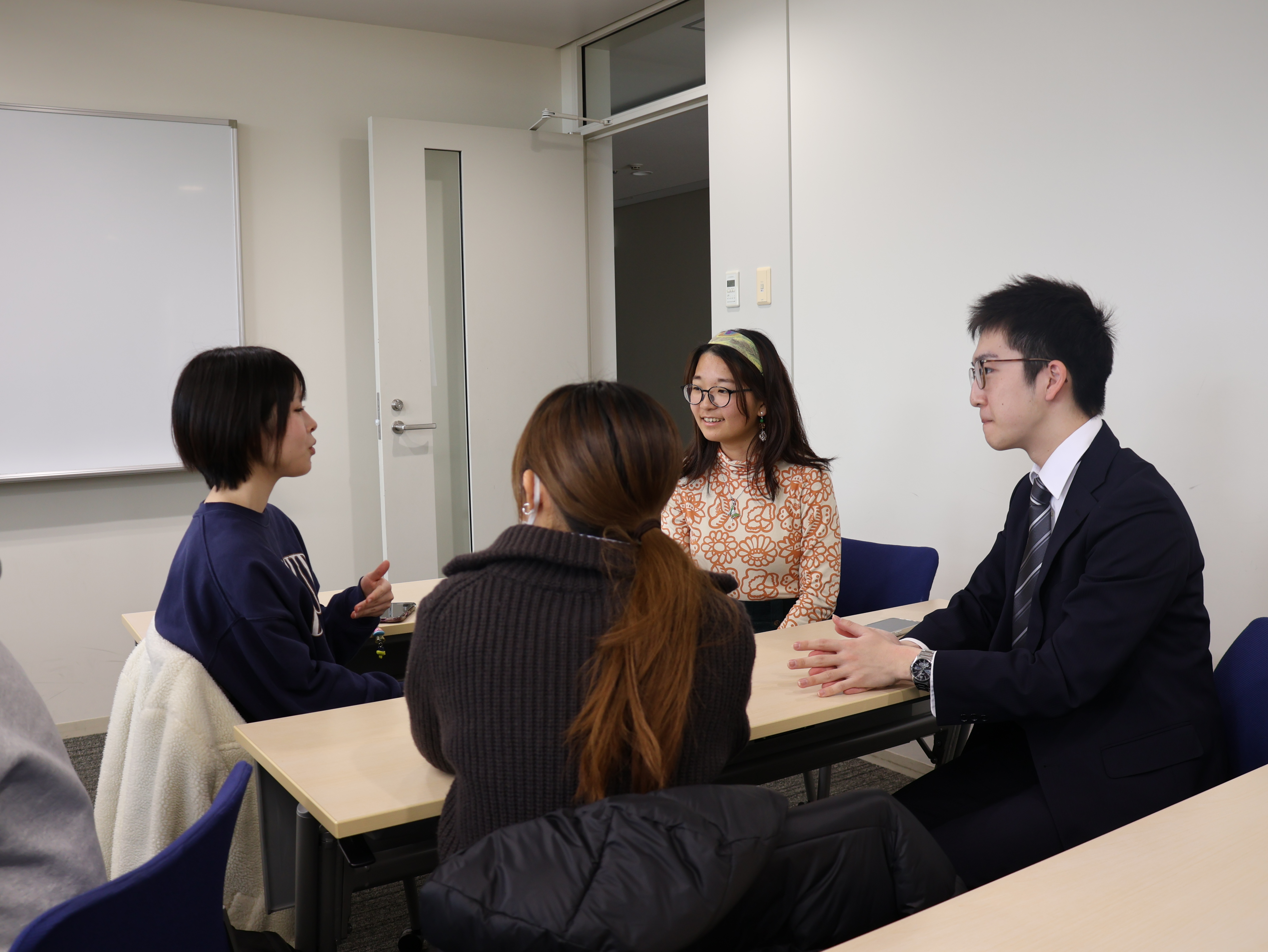 卒業を控える4年生や5年生が、これまでのGCPでの学びを基盤に、交換留学や学外の国際交流事業への参加、就職活動、大学院進学を決めた経緯などについて語りました。後輩からは積極的に質問が寄せられ、進路選択や今後の学びについて考える機会となりました。それぞれの経験が共有される中で、学年を超えた対話が自然と生まれ、GCPならではの学び合いが感じられる時間となりました。