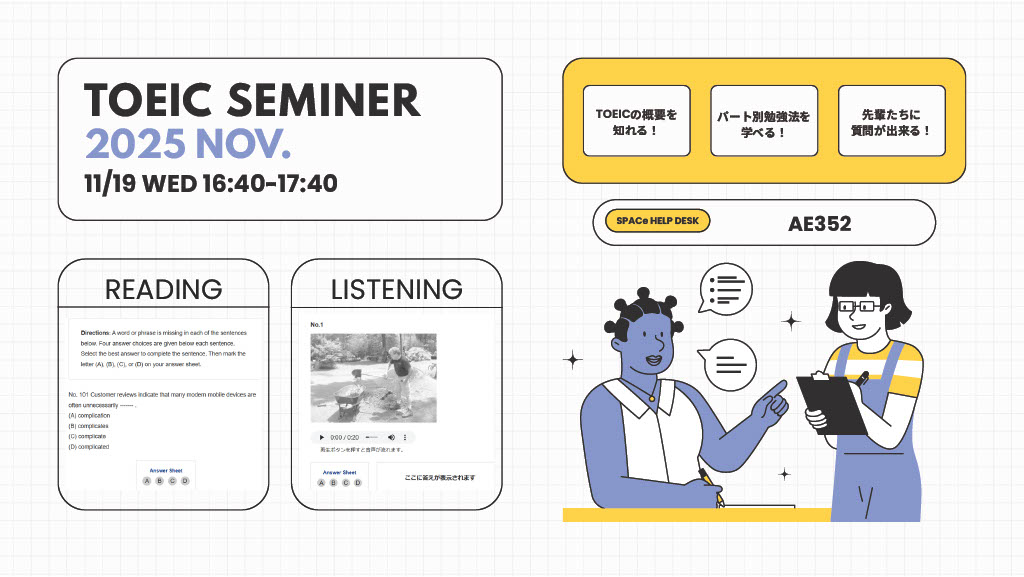 11月19日:学生限定【SPACe】まだ間に合うTOEICセミナーを開催します!