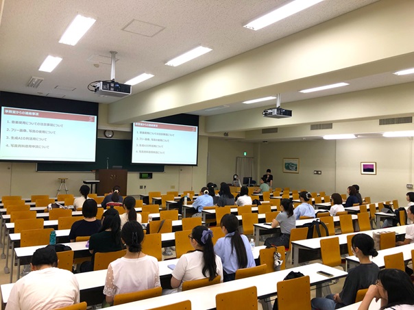 セミナーでは、著作権法について確認した上で、著作権侵害に関する事例を学びました。そして、利用規約や出典元にあたり利活用方法に誤りがないかを確認することの重要性について確認しました。セミナー後半では、画像やイラストを提供するサイトのページを実際に確認しながら利用規約の確認方法を学ぶなど、初秋のキャンパスで開催される学内最大のイベント「白鳥祭」に向けて、著作権を守るためのポイントについて学びました。